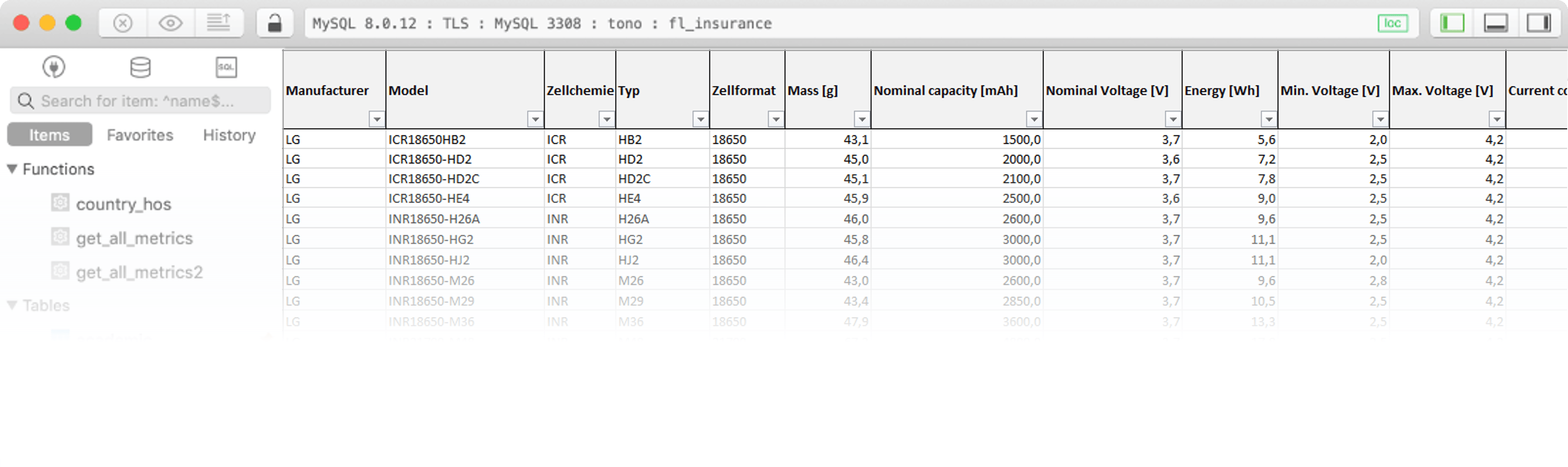 Unsere Datenbank liefert alle wichtigen Zellinformationen für die Erstellung Ihres Batteriepasses. Fehlt eine Zelle? Wir ergänzen sie in kürzester Zeit. So haben Sie immer vollständige, konsistente Daten ohne den Aufwand der eigenen Datenerhebung.